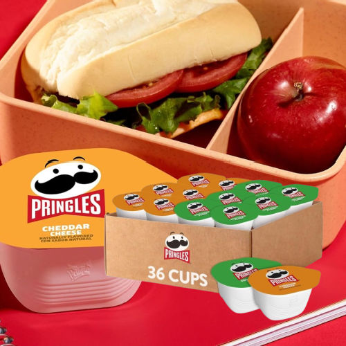 - Snack just about anywhere with the delicious flavor and fun shape of ready to eat Pringles Potato Crisps in Cheddar Cheese and Sour Cream and Onion flavor varieties (18 cups of each flavor)