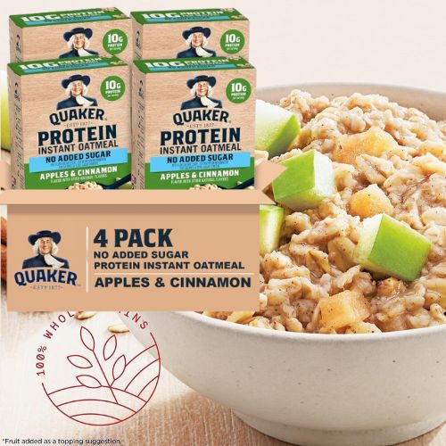 - Quaker Protein Instant Oatmeal is made with 100% whole grains