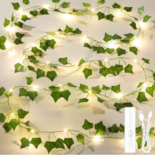 • This set includes 1 ivy vine garland with 100 LEDs, a lipstick-sized power bank, and a USB charging cable, so you can start using your vine fairy lights battery operated right away. No need for vine lights plug in or extra batteries—just charge and enjoy hours of soft, glowing light in your home