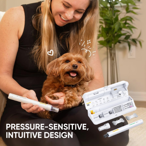 Provides safe, precise, and low-stress grooming. This Rechargeable Pet Nail Trimmer operates at 8,000–25,000 RPM with noise levels as low as 32 dB, designed to minimize vibration and avoid startling pets. Enhanced safety features include a dual-window grinding guard for varied pet sizes, offering three secured modes to prevent over-trimming and skin contact. Its compact design is lightweight at 0.22 lb, ideal for prolonged use, and includes a storage case and accessories. The grinder features a 700 mAh rechargeable battery that charges in about an hour via a Type-C cable, ensuring multiple grooming sessions per charge. Constructed with a durable unibody aluminum-alloy shell, it includes pressure-sensitive speed control and a waterproof, dust-resistant design for daily use.  Right now you can snag this for as low as $55.99 when you use the coupon code JCZ4U8FW (Work for All). Through 04/30/26 or while supplies last.