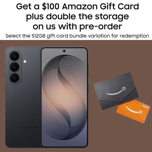 Pre-Order: Samsung Galaxy S26, 512GB +$100 Amazon Gift Card, US 1 Year Warranty $899.99 Shipped Free (REg. $1,199.99) – 3 Colors