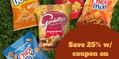 Hop over to Amazon and Save Extra 25% on Select General Mills Snacks. Just an idea, you can ge this Chex Mix Traditional Savory Snack Mix, 4.5-oz Bag for as low as $0.79 (reg. $1.32)! Snack Mix loaded with fun, flavorful shapes of Chex, pretzels, rye chips, breadsticks and more. Clip the 25% coupon. Choose … Continue reading Save Extra 25% on Select General Mills Snacks – Chex Mix Traditional Savory Snack Mix as low as $1.33 After Coupon (Reg. $2.23+) + Free Shipping – 2K+ 4.6/5⭐