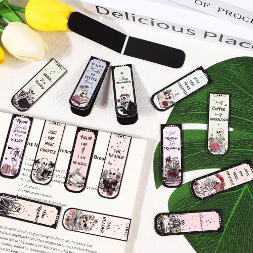 Add a gothic charm to your library with these Skeleton Reading Magnetic Bookmarks, 30-Pack $6.49 – 22¢ Each – 100+ 4.6/5 ⭐️