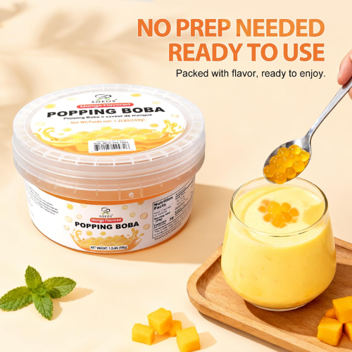 - Each pearl is packed with premium, juicy mango syrup that delivers a refreshing tropical explosion, making it a fun and fruity addition to drinks and desserts.