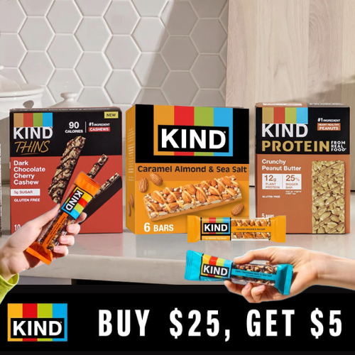 Hop over to Amazon and Spend $25 Save $5 on KIND Granola & Bars. Add something KIND to your breakfast. Just an idea, you can get these KIND Caramel Almond & Sea Salt Nut Bar, 6 Count for as low as $4.07 (reg. $7.48). This wholesome snack bar is made with quality ingredients like almonds, caramel, and sea salt. It contains 5 grams of sugar, 6 grams of protein, and high fiber. It’s gluten-free, low glycemic index, and Non-GMO Project Verified, making it a convenient and healthy snack option. Add FIVE to your cart = $29.85. Choose to Subscribe & Save, and you will score a great deal. Just make sure you have 5 or more items in your monthly order to max out the available discount of 15% off this item = $25.37, minus $5 promo discount = $20.37 or $4.07 for each 6-count pack or 68¢ per bar! Subscribe & Save shipping is free! Check out these other breakfast & snack bars and see these 7 Tips For Healthy Snacking. If you want to make your own granola bars, here’s a Homemade Granola Bar recipe.