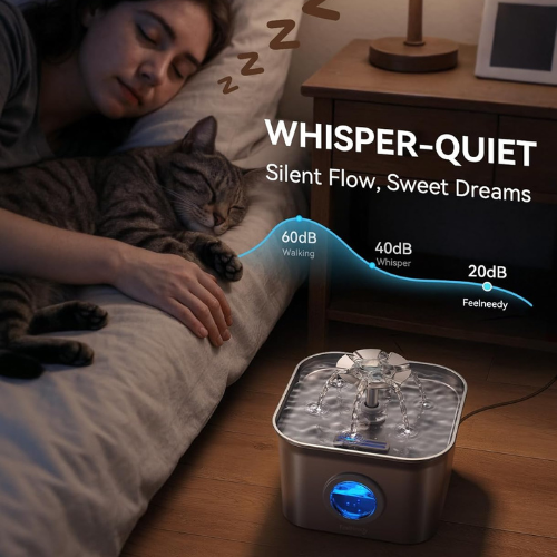 - Equipped with an ultra-quiet pump (under 20dB) that runs silently, ensuring a peaceful environment and reducing stress for shy cats.