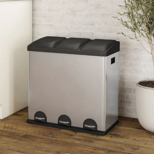 - Large Capacity & Organized: 16-gallon stainless steel trash can with three compartments for easy sorting of waste, recycling, or storage.