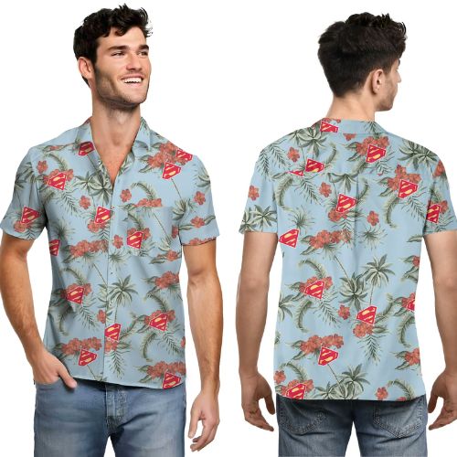 - Graphic print shirt featuring iconic Superman logo.