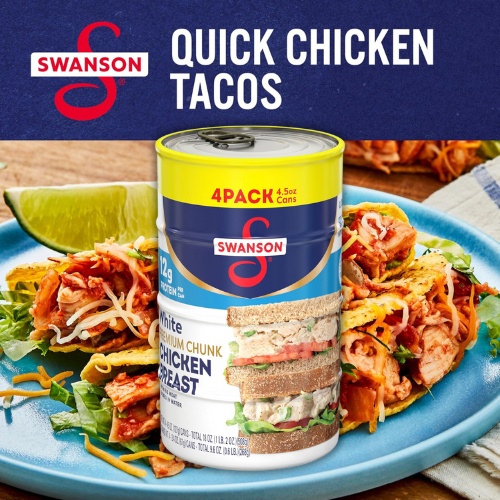 Swanson White Premium Chunk Chicken Breast with Rib Meat in Water, 4.5 oz. 4-Pack as low as $5.23 Shipped Free (Reg. $7.19) – $1.31/can! 17K+ 4.4/5⭐