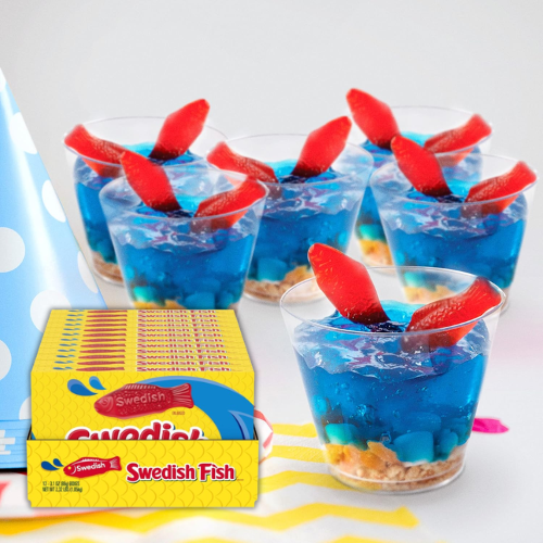 - This case includes twelve 3.1 oz boxes of the original, fruit-flavored SWEDISH FISH, providing the perfect supply for movie nights, road trips, or party favors.