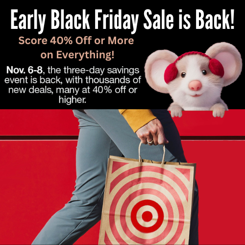 Score a HOT Early Black Friday deals at Target and Score 40% Off or more on everything! The 3-Day Early Black Friday Sale is back from November 6–8, offering huge discounts of at least 40% on a wide range of items. We’re talking up to 50% off on toys, small appliances, floor care and more, 40% off cozy sweaters, pajamas, lego, tech gadgets and select holiday décor and lights. Take advantage of this huge discounts on everything you need to start your holiday shopping. This is the time to take care of gifts, remodel your house, or simply buy something for yourself.