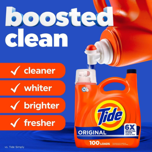 - TOUGH ON STAINS: Tide’s laundry soap works on 100% of common stains plus has 10X the grease fighting ingredients versus leading bargain detergent. Don’t settle for “almost clean”, get Boosted clean with Tide laundry detergent, every load, every time