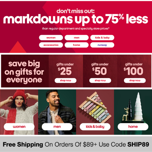 Hop over to TJMaxx and get Up to 75% Off Their Major Clearance Deals + Score Free Shipping on orders of $89+ with code SHIP89. The Christmas season is quickly approaching, and whether you want to update your wardrobe with holiday-ready items or plan to start early on your gift list, TJMaxx have a great deals for you. They just dropped its major clearance deals with up to 75% off designer fashion for the family, beauty & accessories and home must-haves this sale has you covered. PLUS you’ll get free shipping on orders of $89 or more when you use the code SHIP89.
