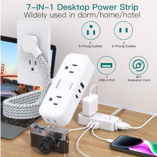 - Power Strip with USB-C: Features 3 USB ports for multi-device charging. USB-A ports deliver up to 2.4A each, while dual USB-C ports provide up to 3A—ideal for phones, tablets, laptops, and more.