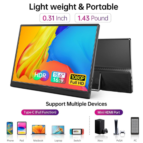 • Wide Compatibility – Enjoy hassle-free plug-and-play functionality with the portable monitor. it is compatible with all devices equipped with HDMI and USB Type-C ports like laptops, PS, XBOX, SWITCH game consoles, No app or driver installation required.