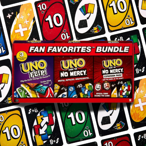 Hop over to Walmart and get a deal on UNO Card Game Bundle: Flip + Show ‘Em No Mercy + Expansion Pack. UNO Flip keeps gameplay exciting with a dual-sided deck switch between the Mild Side and the Wild Side for an unpredictable twist. UNO Show ‘Em No Mercy raises the stakes with ruthless penalties like Draw 10 and Skip Everyone, making it a thrilling challenge for all. And the UNO Show ‘Em No Mercy Expansion Pack adds even more cards and twists to intensify the game and amplify the fun. Also see these Games, Toys & Puzzles from Ravensburger, ThinkFun & More.