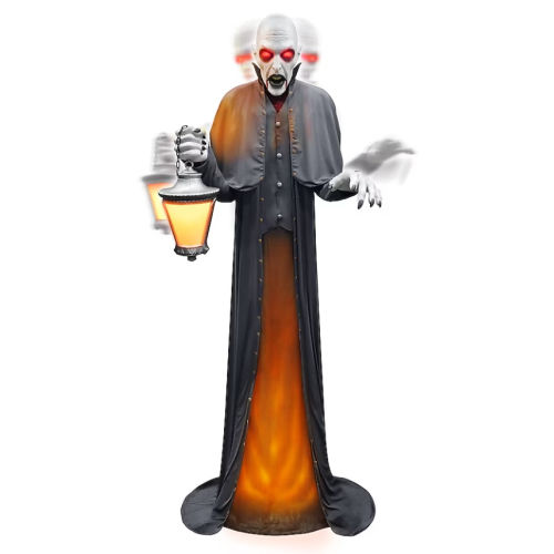 Perfect for outdoor haunts and trick-or-treat thrills, the ANIMATED IMMORTAL NIGHTWALKER is Halloween royalty, RESURRECTED with soul-piercing LED eyes, a talking mouth synced to chilling sounds, and slow, deliberate waist-turning animation — glowing LED lantern in hand — as he searches the shadows for his next victim! Powered by a 5.9-volt, 3-amp DC adapter (included).