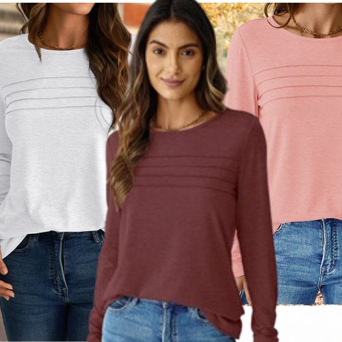 Women’s Long Sleeve Tunic Shirts with Pleated Front from $6.99 After 50% Code (Reg. $13.98+) – Various Colors, S-XXL