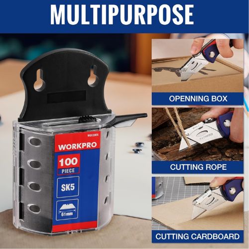 - Durability: WORKPRO utility knife blades are made from SK5 steel, which is of high quality and durability