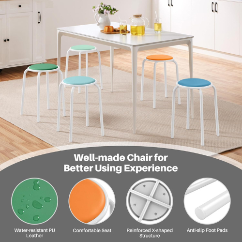 Ensuring extra seating is always within reach. Yaheetech 18-Inch Padded Stools, 5 Pack feature a foam-padded seat covered in easy-to-clean faux leather, providing comfort for extended sitting. They have a sturdy steel frame with an X brace for stability, are water-resistant, and designed for durability. The stools are stackable for space-saving storage, equipped with protective foot caps to prevent floor scratches and frame oxidation. With an 18″ seat height, they are suitable for both indoor gatherings and outdoor activities. Right now you can snag this for only $62.99 + free delivery. Through 01/17/26 or while supplies last.