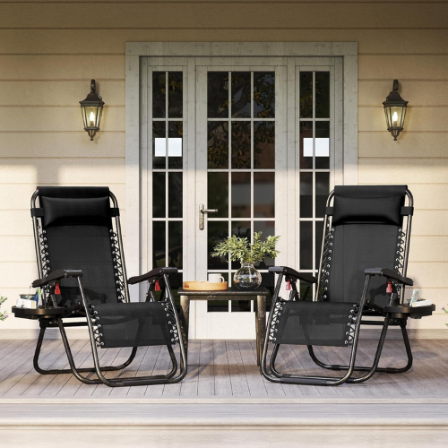 The Yaheetech 26″ Zero Gravity Recliners are perfect for anyone looking to kick back and enjoy their outdoor space without fuss. These chairs are designed to be super comfortable, with adjustable reclining positions that let you find just the right angle, whether you’re soaking up the sun on the patio, lounging by the beach, or relaxing in the backyard. The built-in pillows add a touch of extra support for your neck and head, making it easy to unwind after a busy day. Plus, the cup holder trays are a small but thoughtful detail, so you can keep your drink close without worrying about spills. They fold up easily with the included carry strap, making it simple to move them around or pack them for your next outdoor adventure. The sleek black finish looks great in any setting, and the set of two means you can share the comfort with a friend or loved one. All in all, these recliners are a convenient, comfortable way to make your outdoor moments more relaxing and enjoyable.