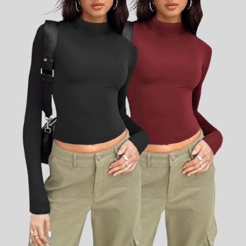 This long-sleeve fitted crop top is crafted from a premium blend of 95% Polyester and 5% Spandex. It offers an exceptional stretch and a lightweight, soft feel that ensures a flattering slim fit for various body types. The elegant mock turtleneck design beautifully frames your neck, making this versatile top feel both dressy and casual for a sophisticated, sleek silhouette. Available in a wide array of colors. Sizes range from Extra Small to Extra Large. Just $7.49 for 2-pack ($3.75 each) when you use the code 5B4963MT at checkout!