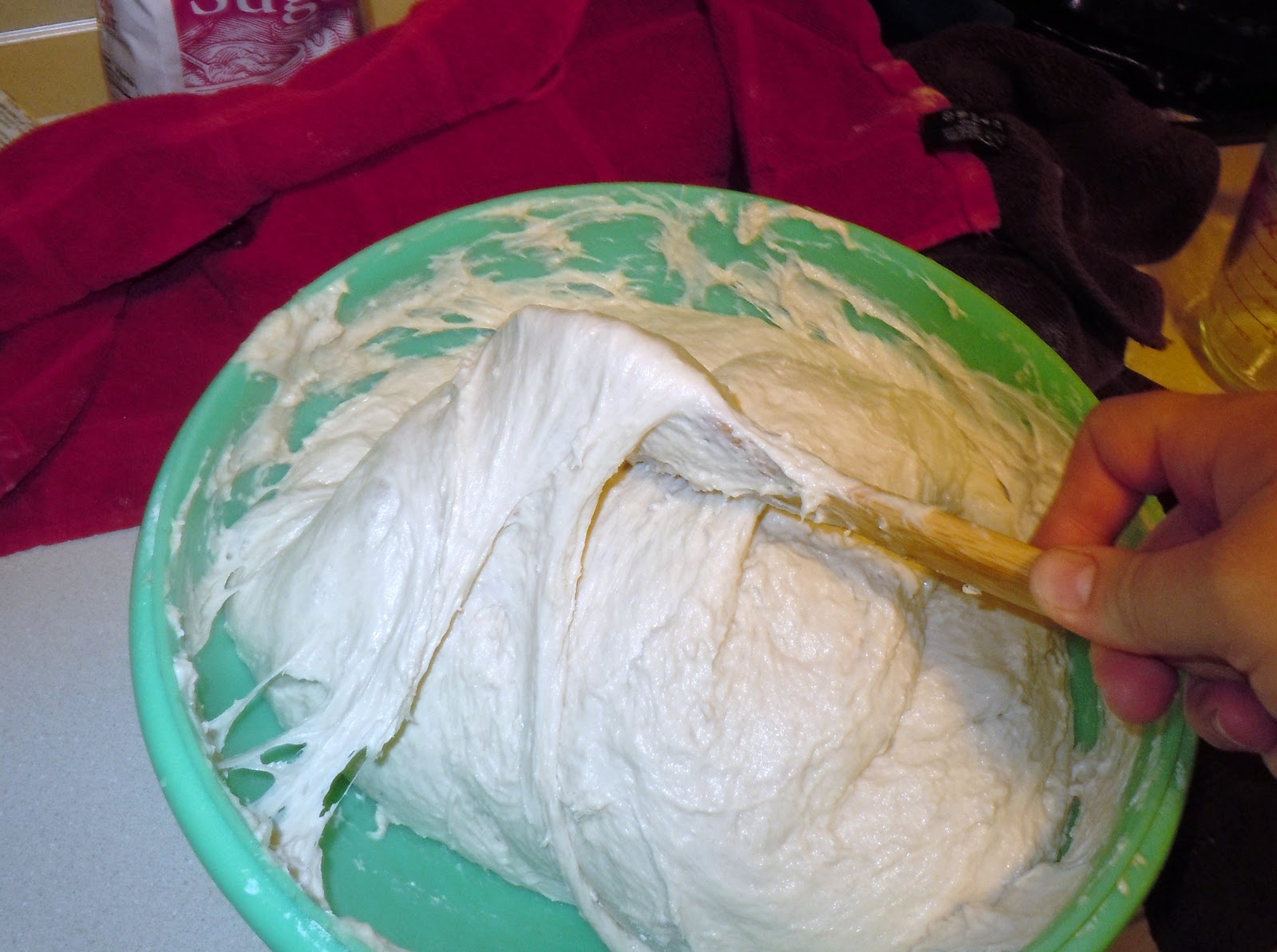 Stir from the outside of the bowl, piling onto the inside. Cover, and wait 10 minutes. Repeat 6 times.