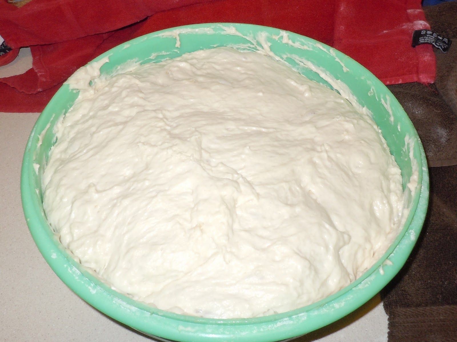 Did not rise. Either it is too cool in my house or I killed the yeast with too hot of water.