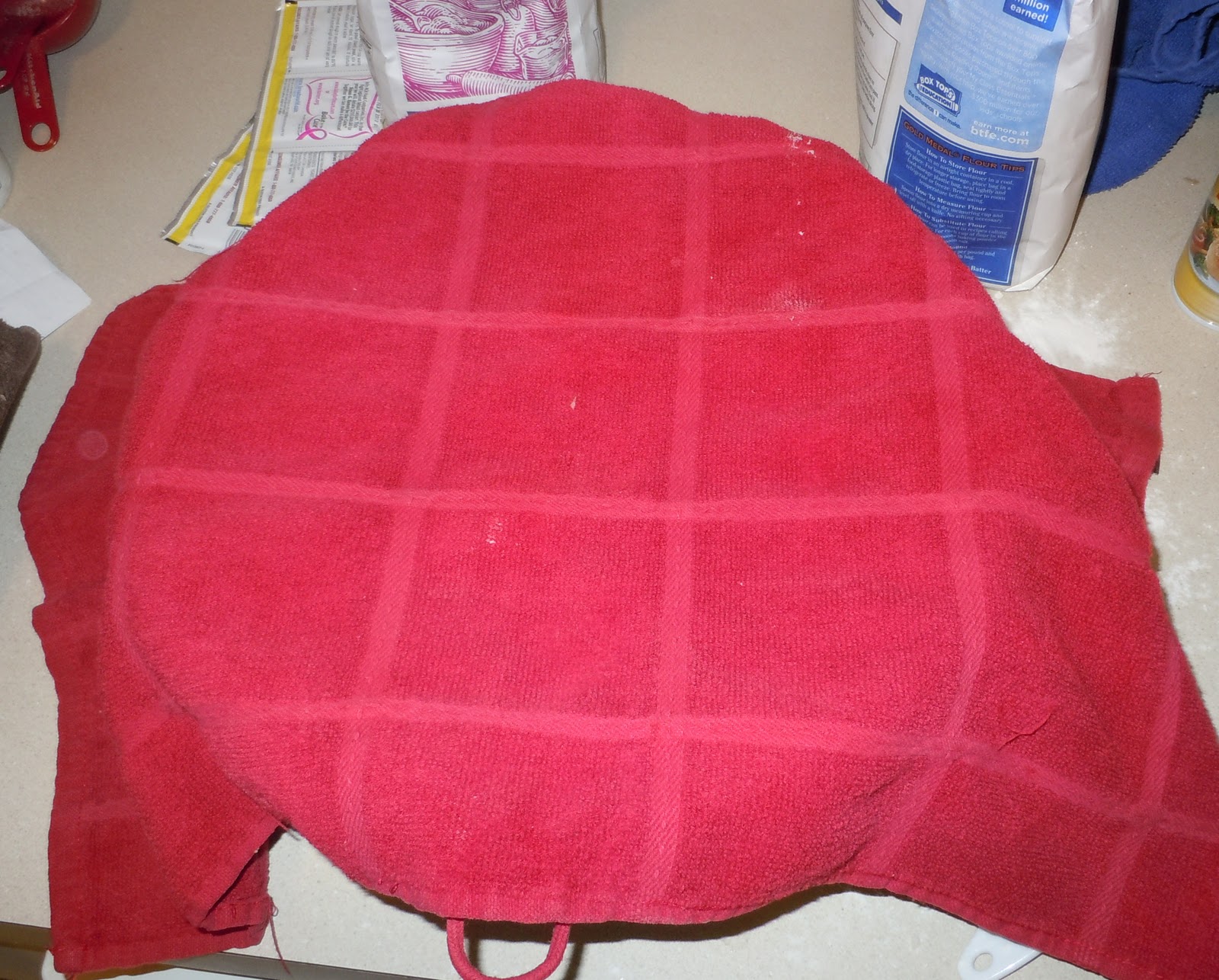 Place in well oiled Loaf Pan (I used oil for some, and then when they didn’t come out very easily I switched to coating them with Pam for Baking, and then the oil. The oil gives them a buttery taste, the pam lets it slide out of the pan easily!) Cover and let rise for 30 minutes. I spray Pam on the bottom of the towel, it makes the bread not stick to it.